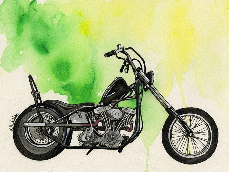 All of my pieces start with research, photo references, and sketches. From there, I work with pencil on a drawing laying out the line work and shading. Next, I transfer the drawing on quality paper and then, I color with primarily watercolor, gouache, markers, and inks. Photoshop is also used in the mix.